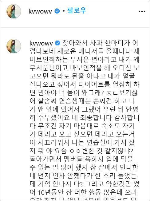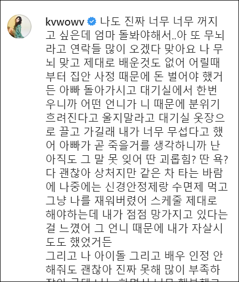 열심히 활동하던 AOA를 탈퇴해서 저 스스로도 많이 의아해했던 권민아님이 오늘 인스타의 글로 실시간검색어에 오르내리고 있습니다.