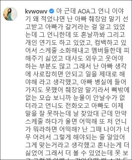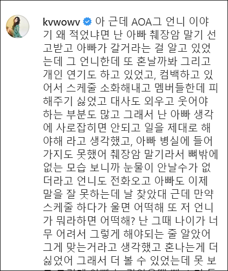 아래는 AOA 권민아 인스타 내용입니다.
