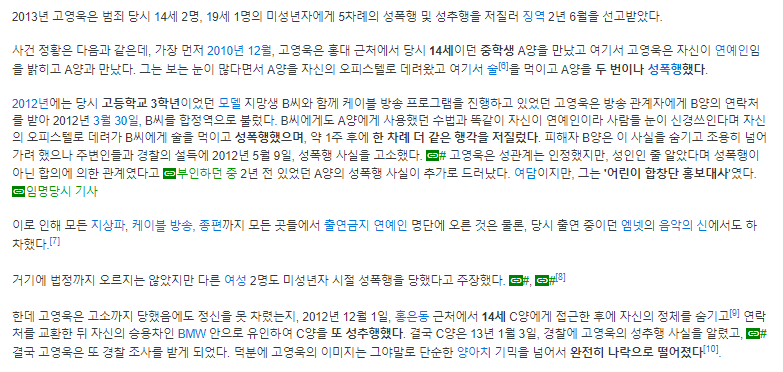 다음은 나무위키에 적혀 있는 고영욱의 사건 내용이다.